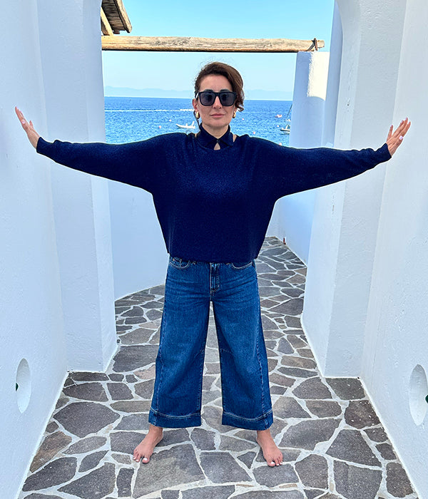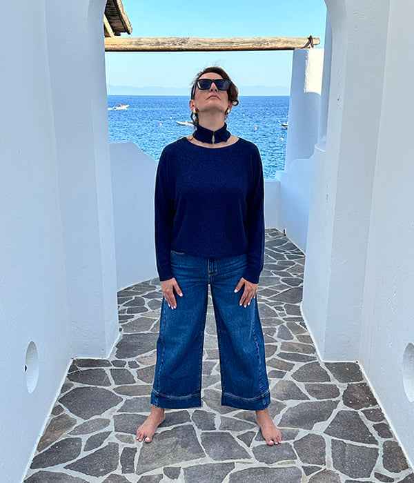 Dieser stilvolle Pullover in klassischem Navy wird durch fein schimmernde Pailletten dezent veredelt. Der geteilte Kragen verleiht dem Design eine moderne, feminine Note – aufregend schön und herrlich bequem.